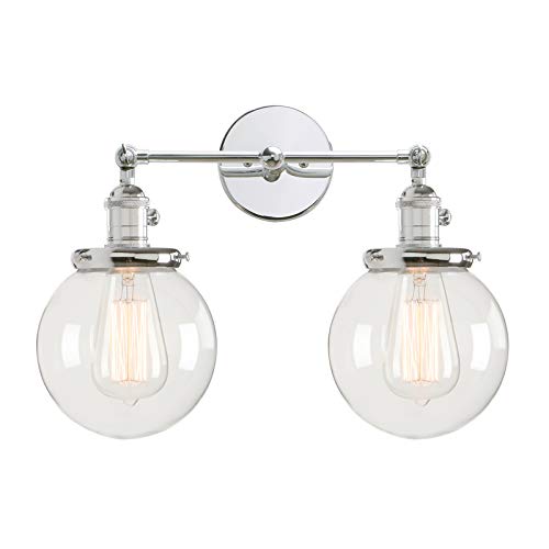 reddit Permo Double Sconce Vintage Industrial Antique 2-Lights Wall Sconces with Dual Mini 5.9 Round Clear Glass Globe Shade (Chrome)